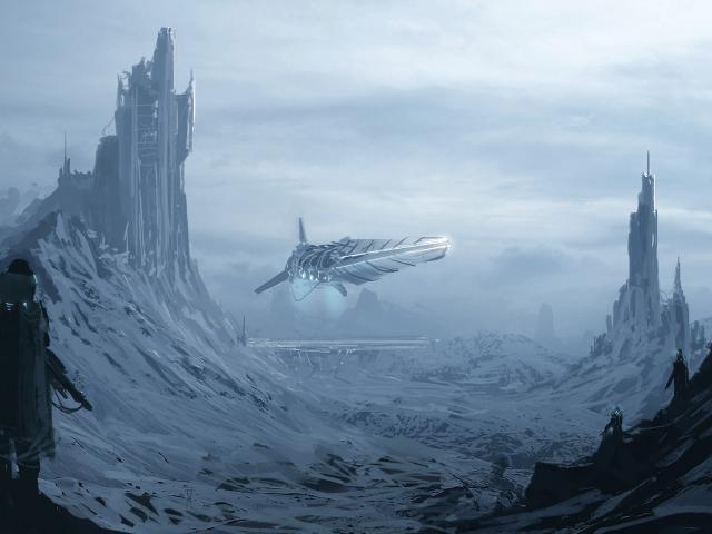 Обои Одинокий человек, космический корабль