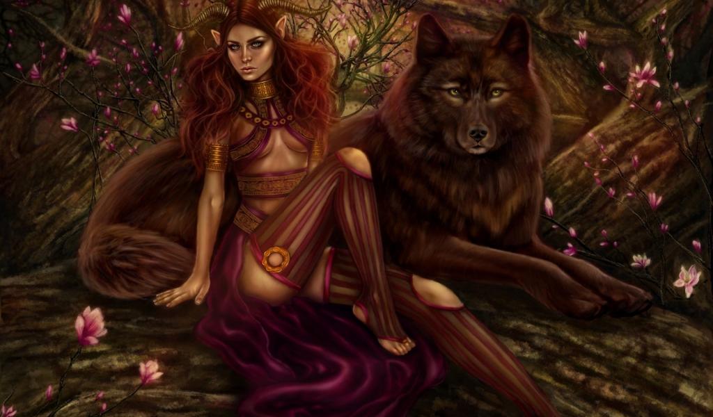 Обои Девушка и волки