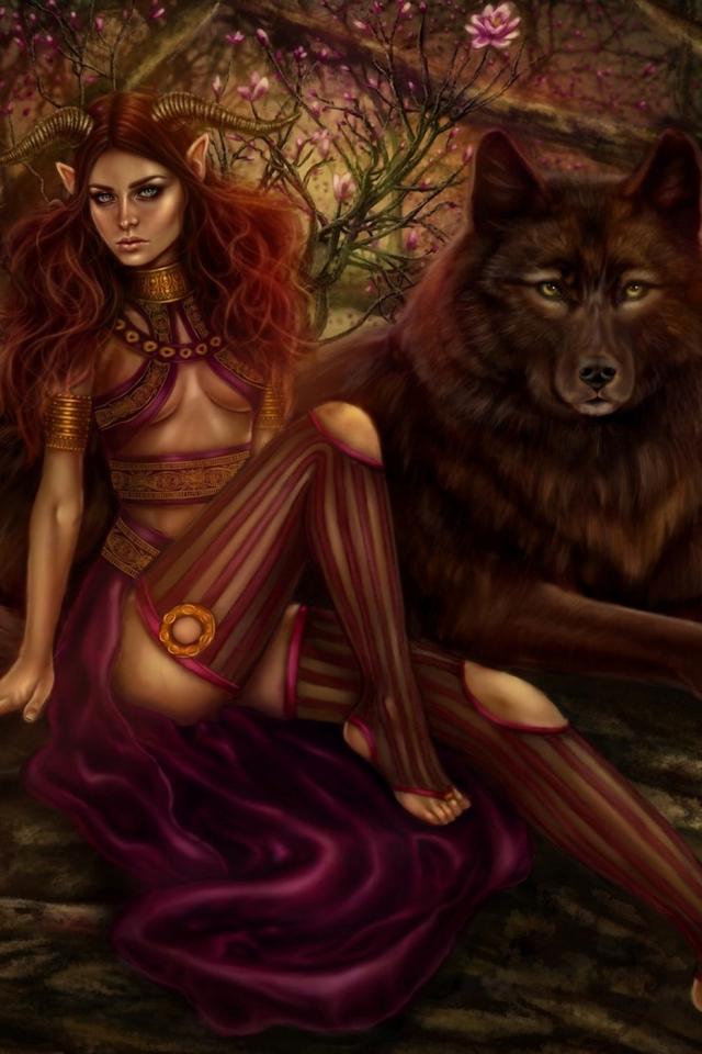 Обои Девушка и волки