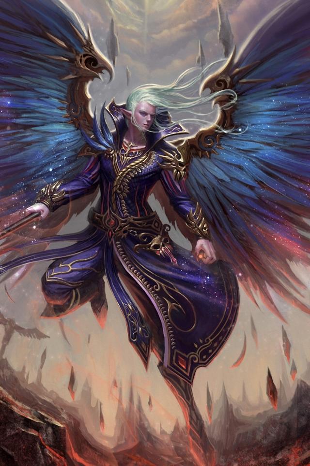 » Обои Парень, крылья, эльфийка
