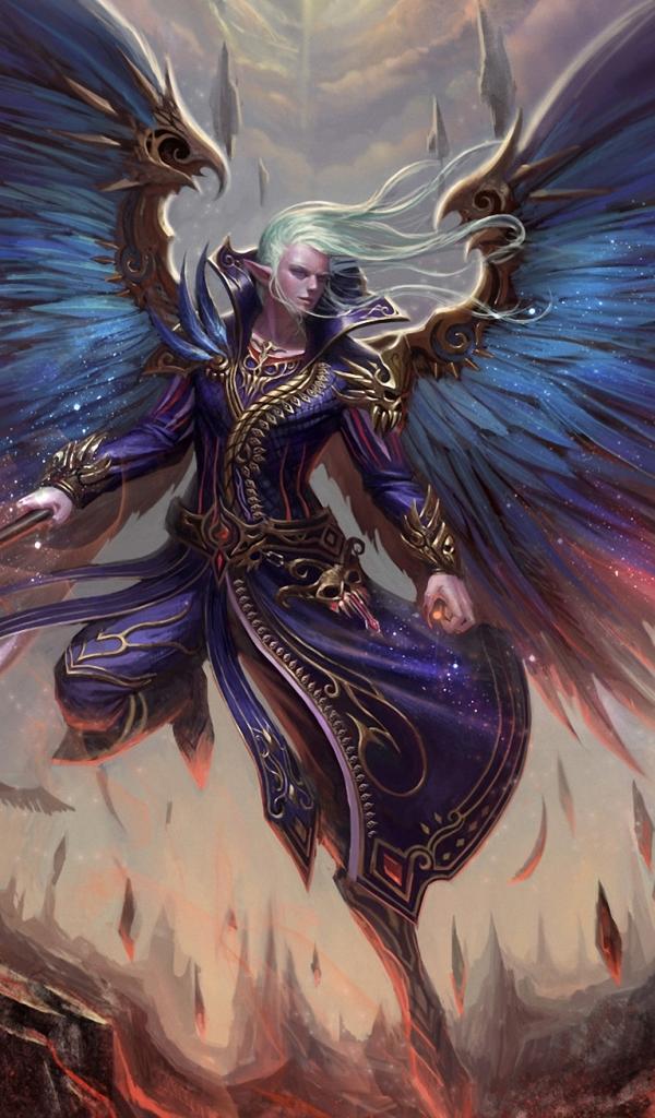 » Обои Парень, крылья, эльфийка