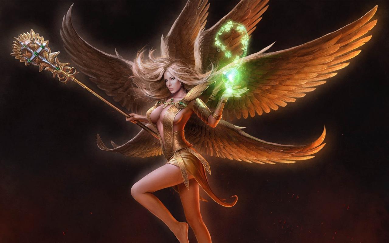 Обои Огонь, крылья, жезл