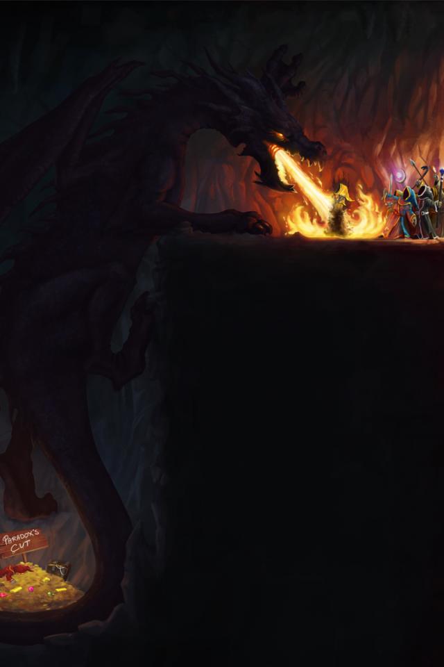 Обои Дракон, крылья, пещера, сокровище
