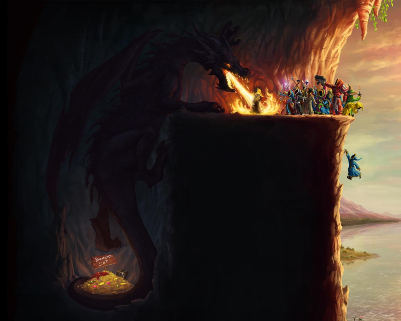 Обои Дракон, крылья, пещера, сокровище