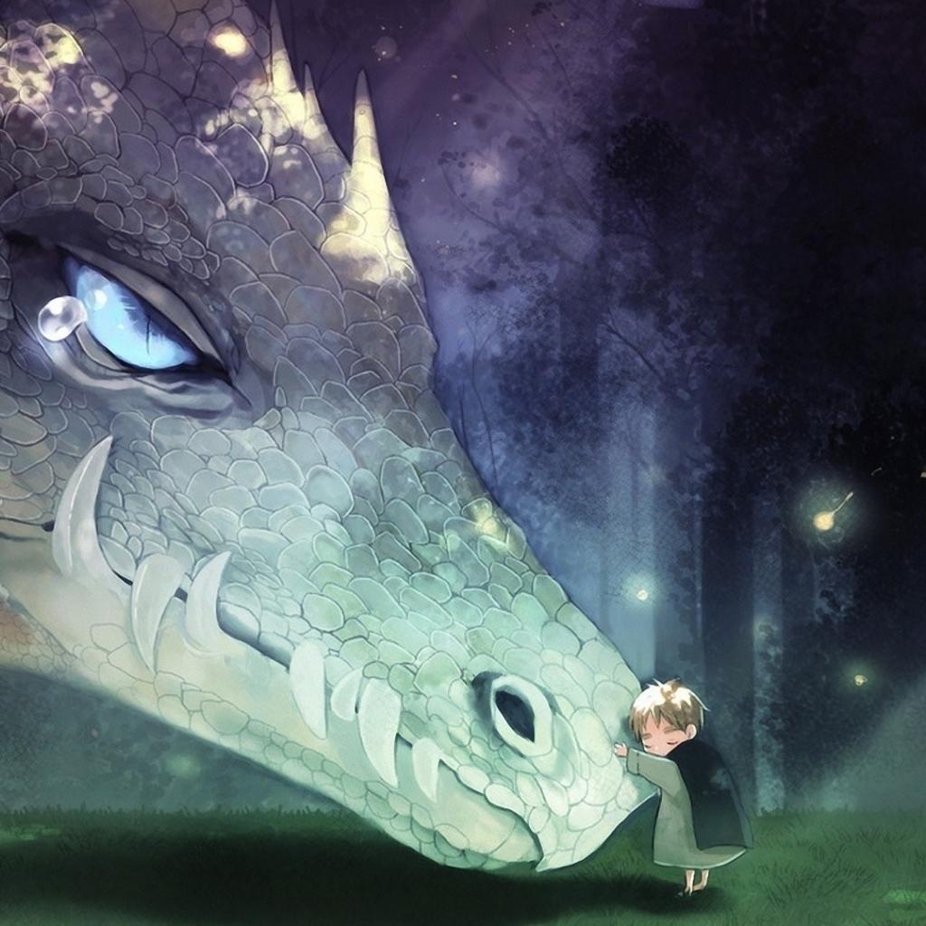 Обои Голубые глаза, Огни, Дракон