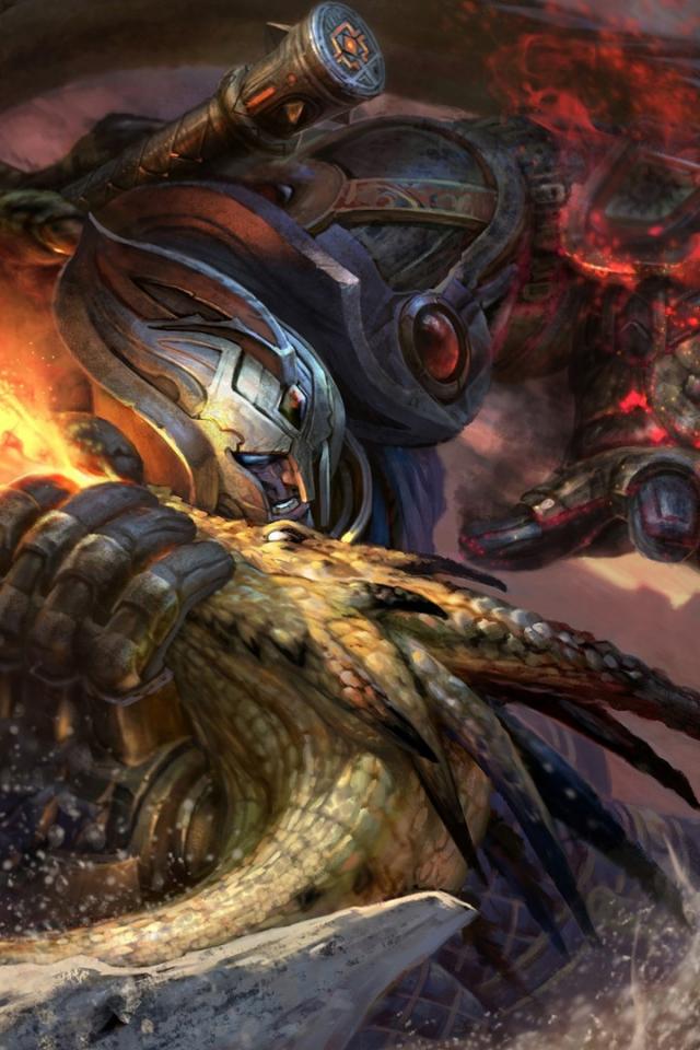 Обои Огонь, Драка, Фантазия, Дракон