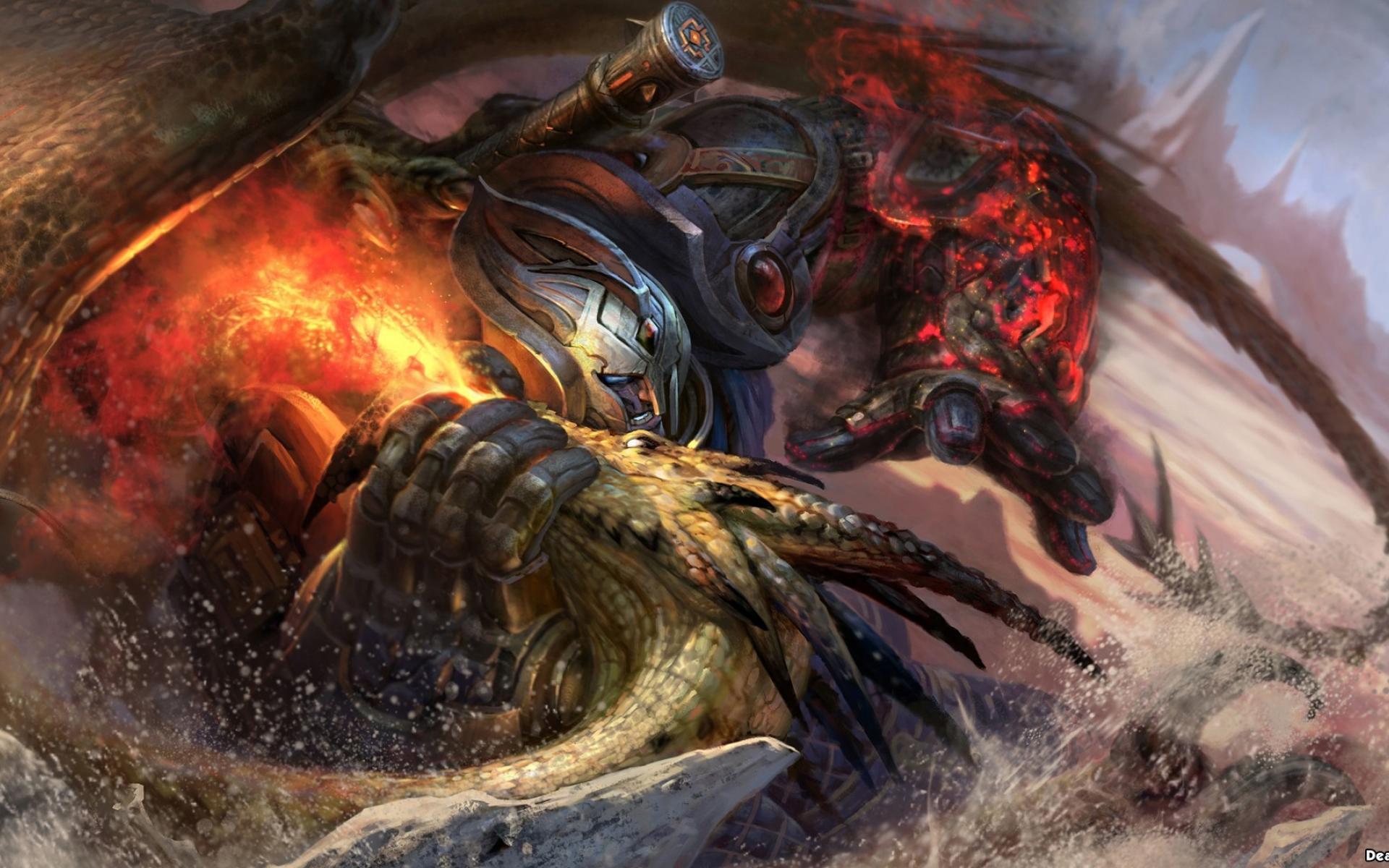 Обои Огонь, Драка, Фантазия, Дракон