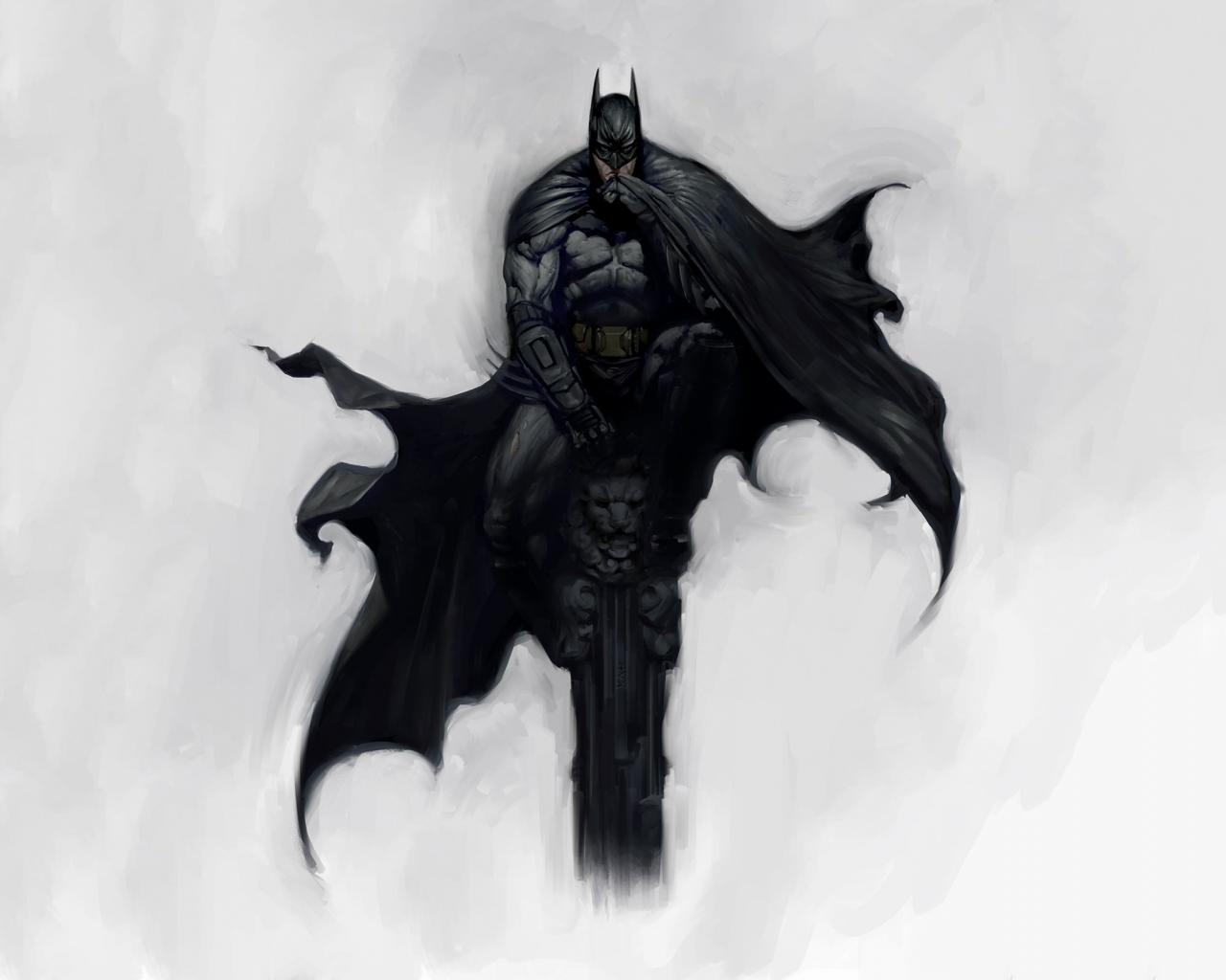 Обои Бэтмен сидит на колонне