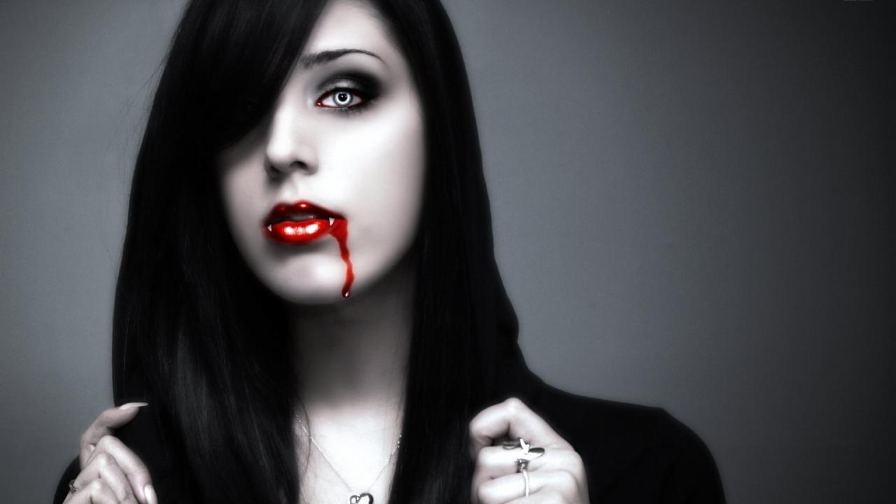 Обои Черноволосая девушка вампир
