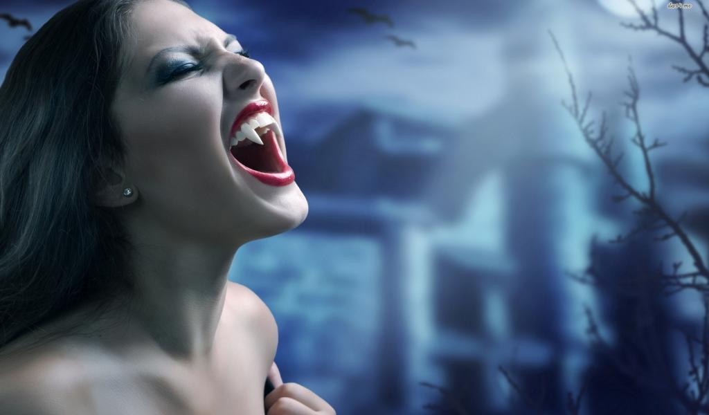 Обои Мощные клыки у девушки вампира