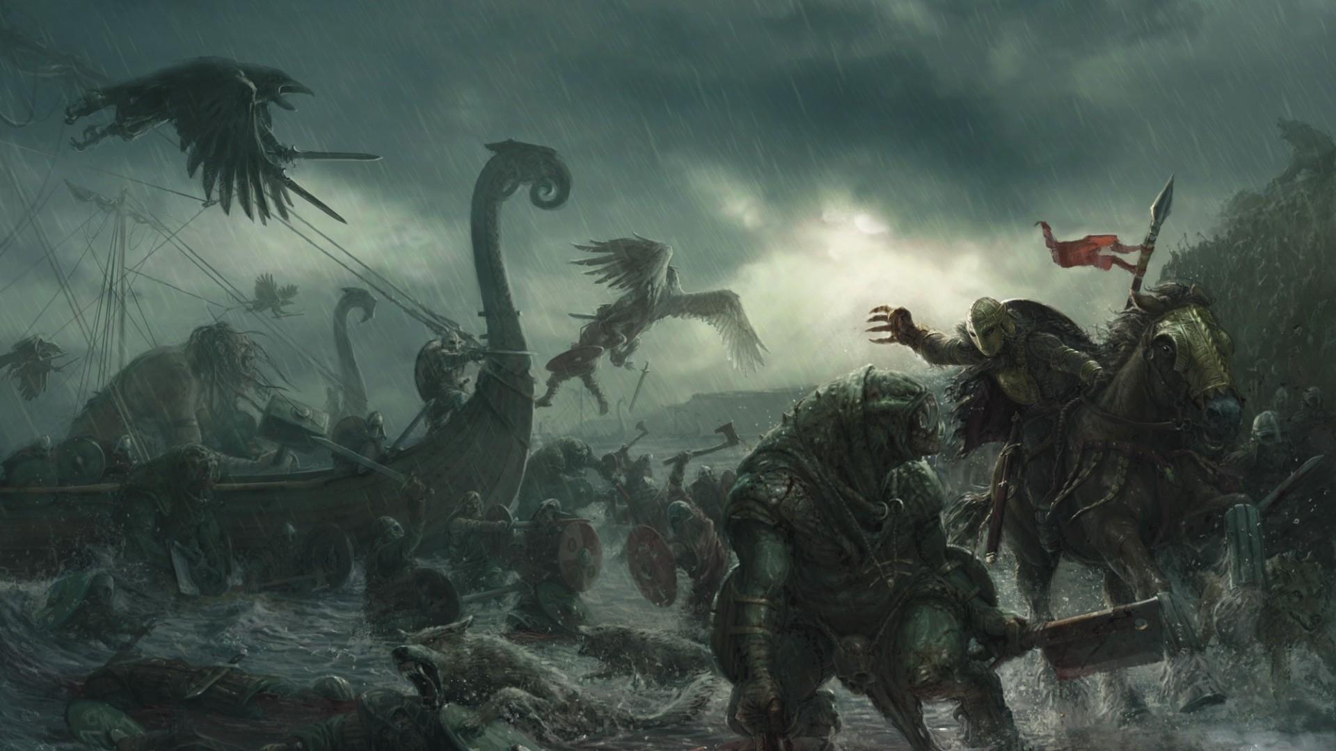 Обои Сражение викингов с монстрами