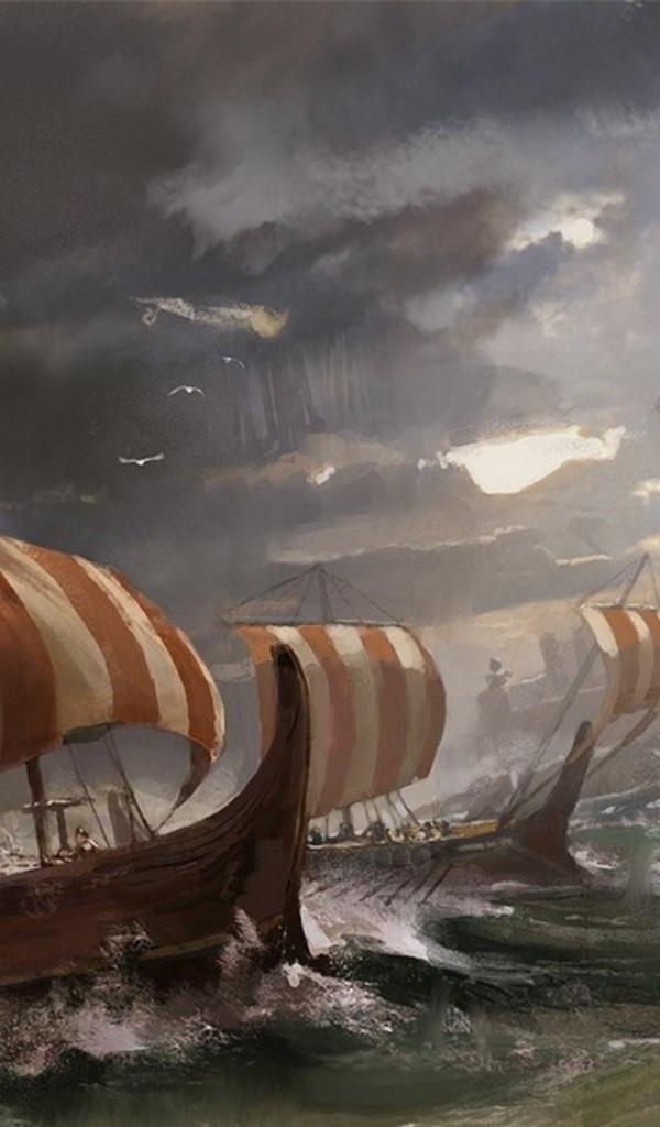 Обои Корабли викингов у вражеской крепости