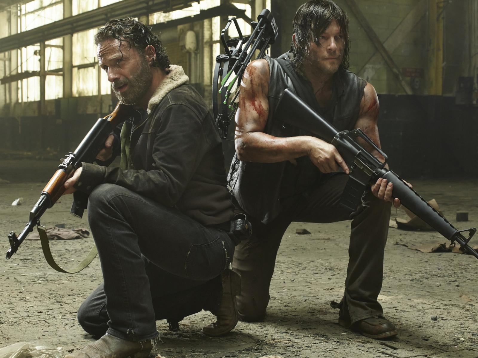 Обои Рик и Дерил из Ходячих Мертвецов держат оборону