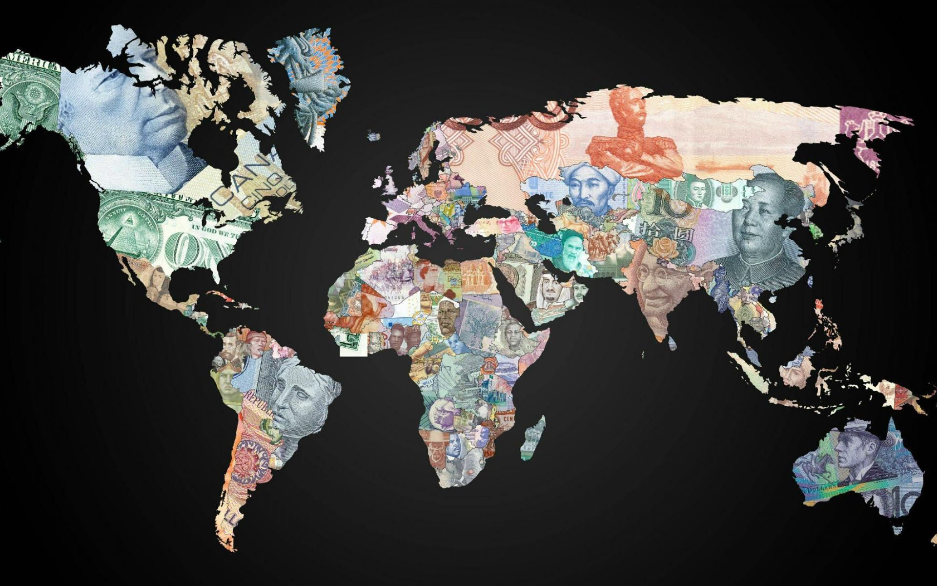 Обои Деньги на карте мира