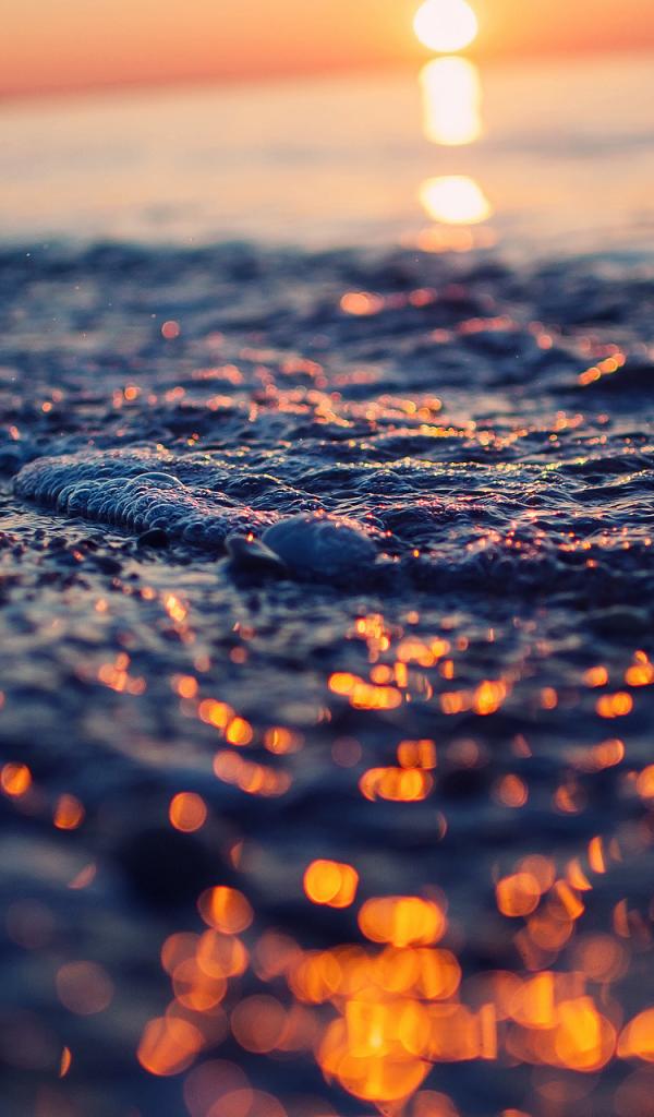 Обои Пена волн на закате