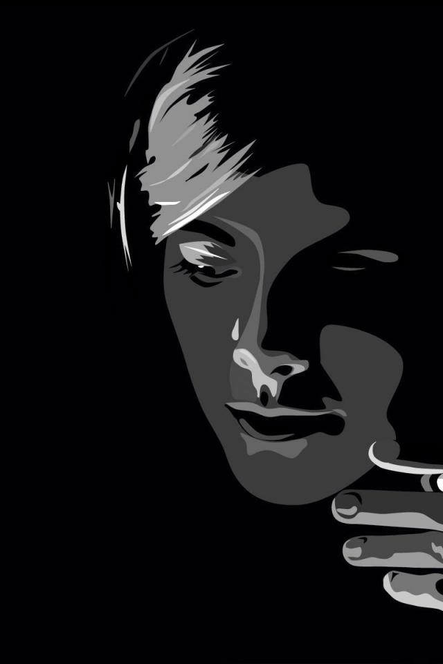 Обои Лицо человека на черных обоях