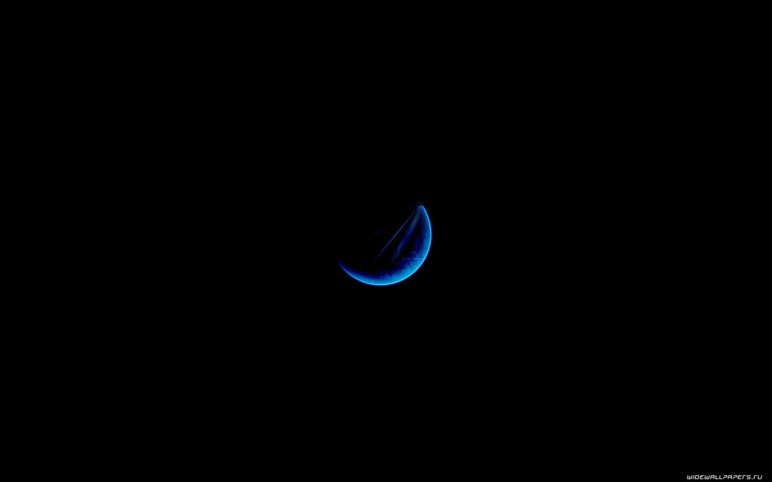 Обои Половинка голубой луны на черном фоне