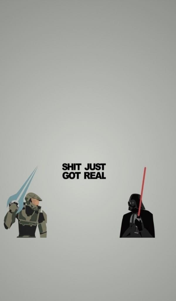 Обои Дарт Вейдер и Мастер Чиф, серый фон