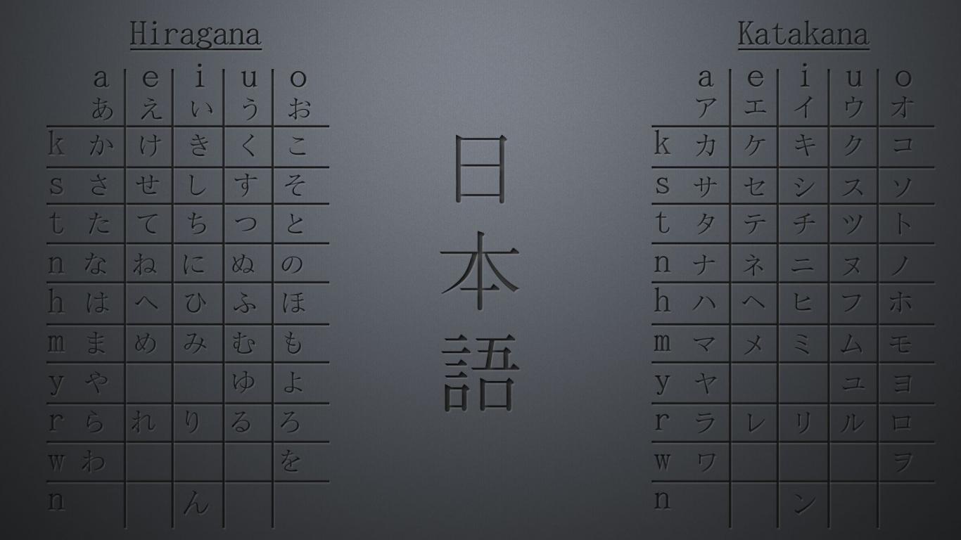 Обои Японский алфавит, серый фон