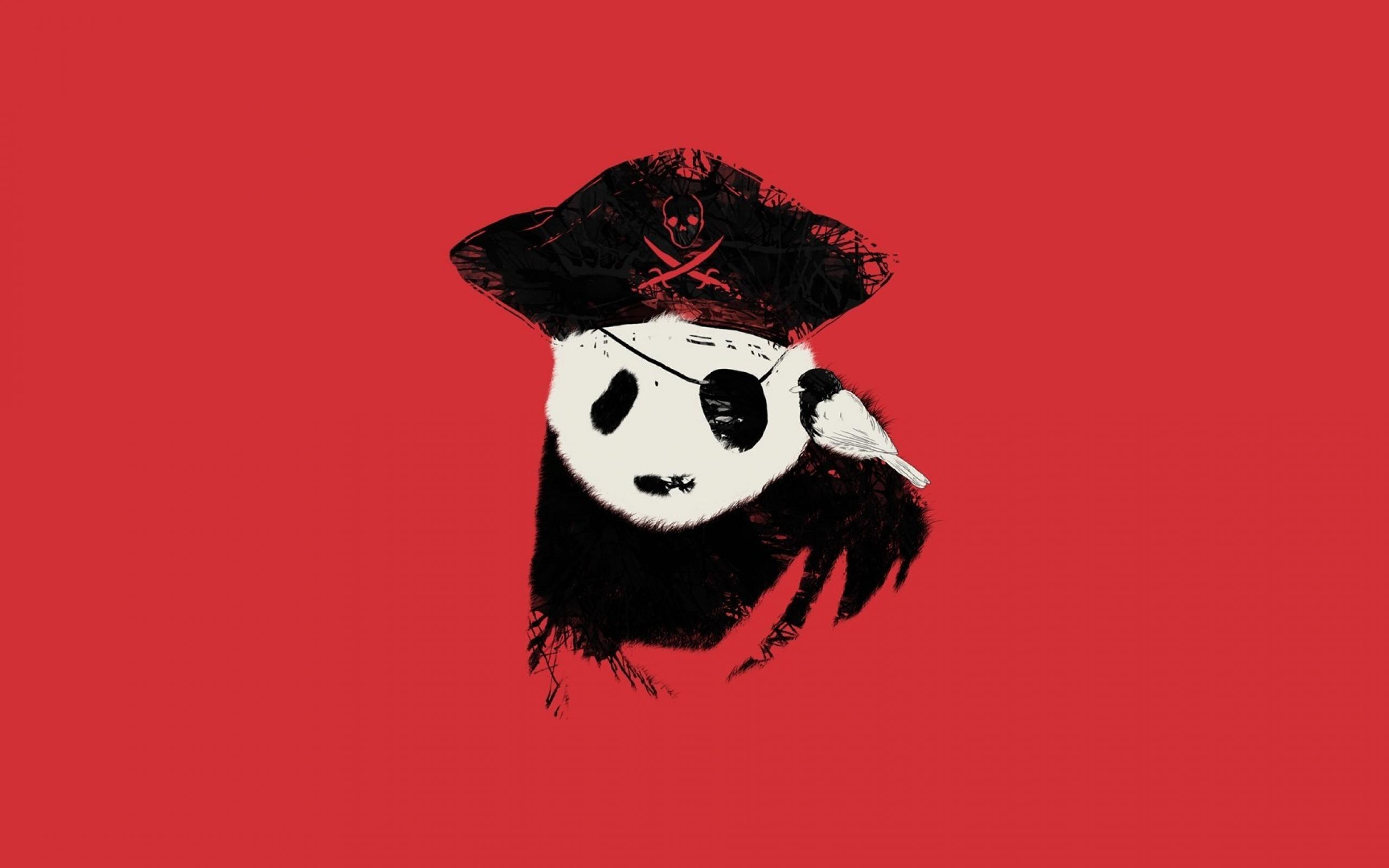 Обои Панда пират, красный фон