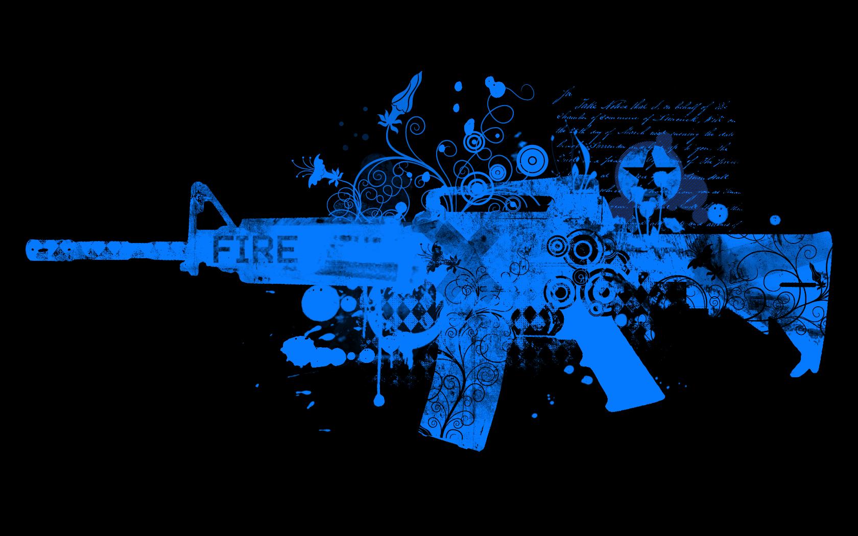 Обои Голубой автомат, черный фон