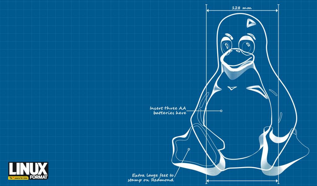 Обои Чертеж пингвина Linux GNU