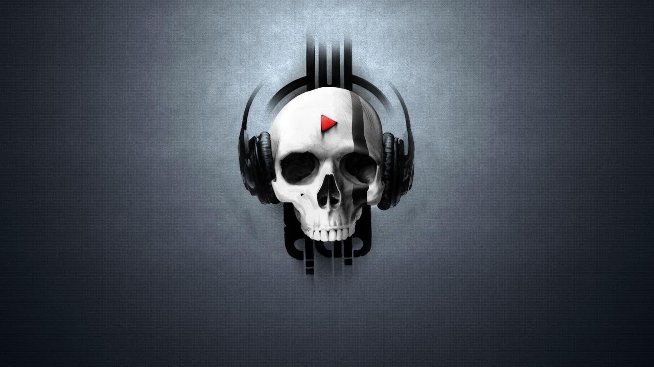 Обои Череп в наушниках, серый фон