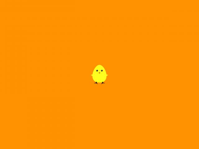 Обои Желтый цыпленок, оранжевый фон