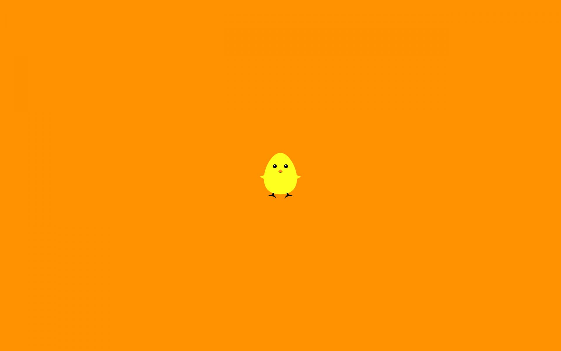 Обои Желтый цыпленок, оранжевый фон
