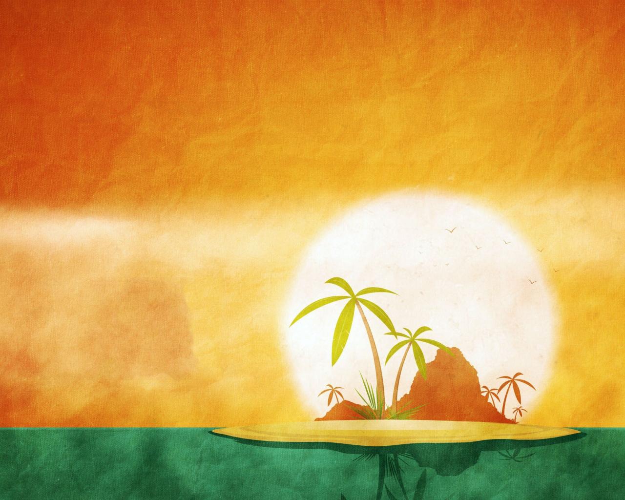 Обои Тропический остров, оранжево зеленый фон