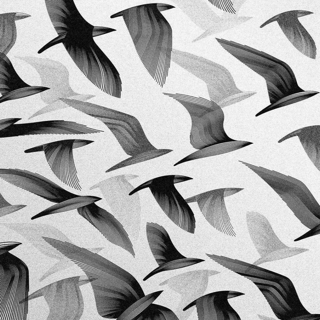 Обои Черные птицы, серый фон