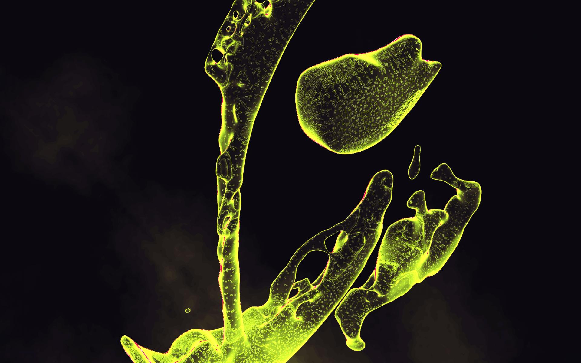 Обои Капли зеленой жидкости на черном фоне