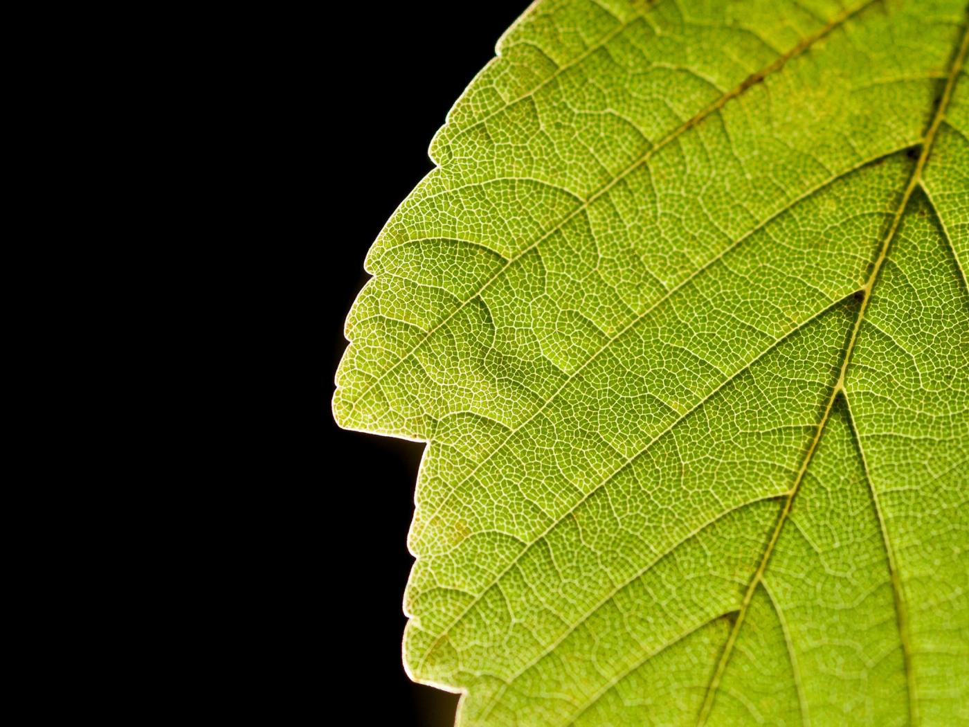 Обои Зеленый лист и черный фон