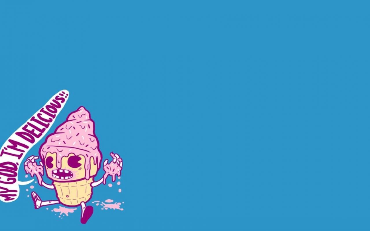 Обои Розовое мороженое, голубой фон