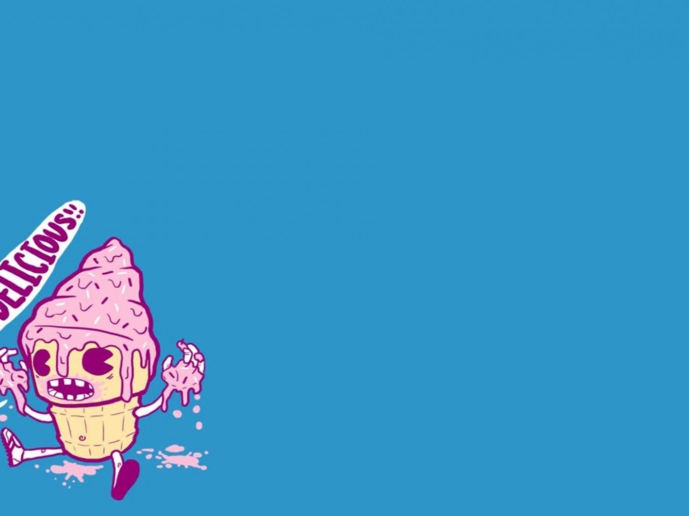 Обои Розовое мороженое, голубой фон
