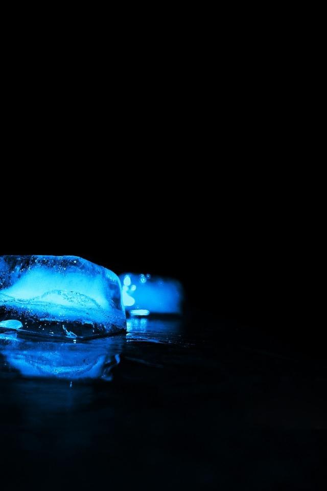 Обои Голубые кубики льда на черном фоне