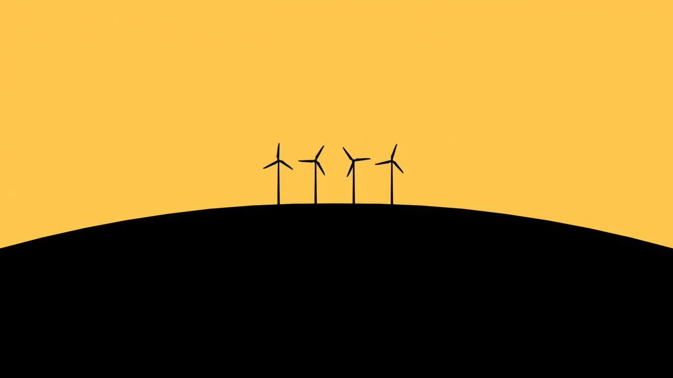 Обои Ветрогенераторы, черно оранжевый фон