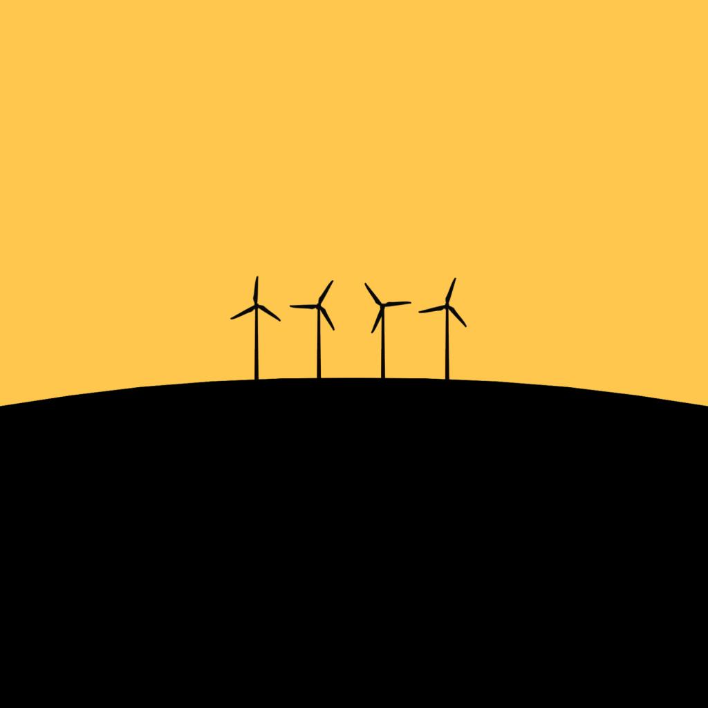 Обои Ветрогенераторы, черно оранжевый фон