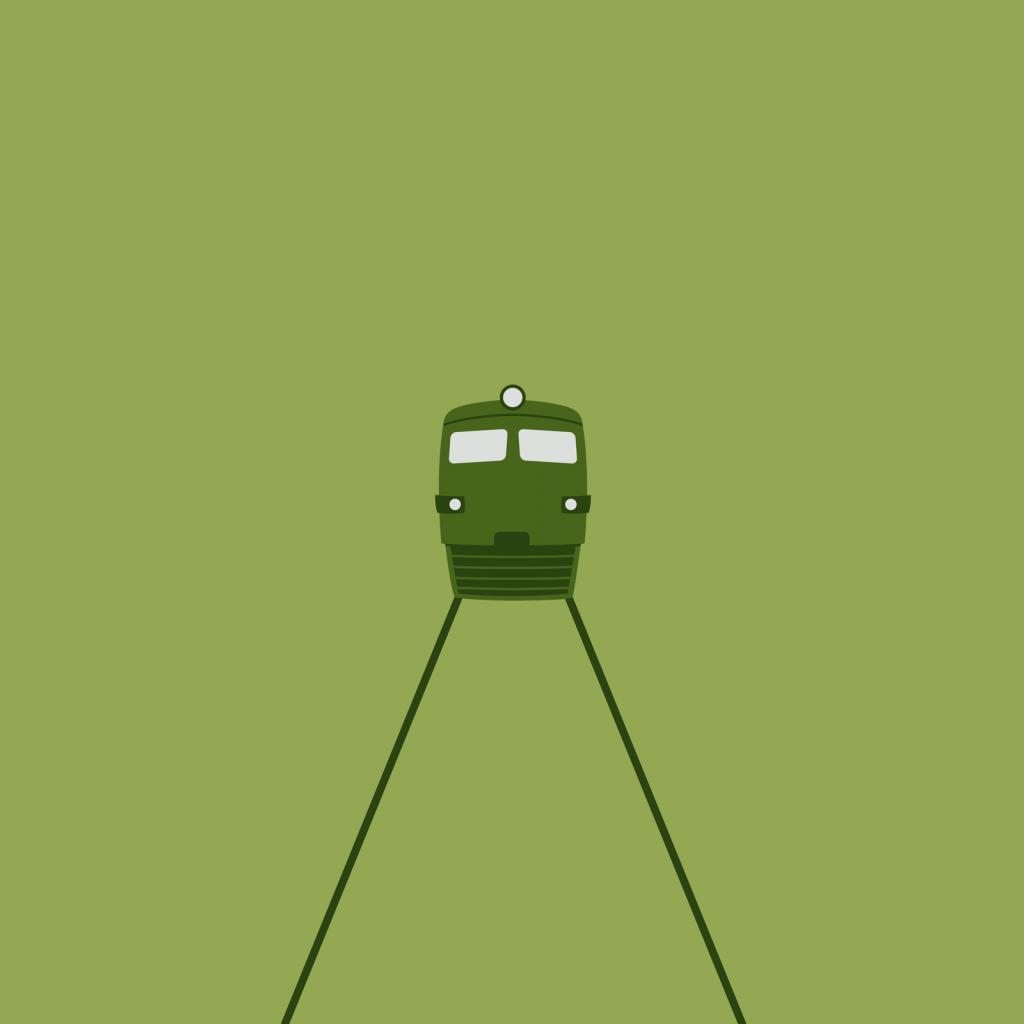 Обои Приближается локомотив, зеленый фон