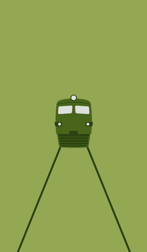 Обои Приближается локомотив, зеленый фон