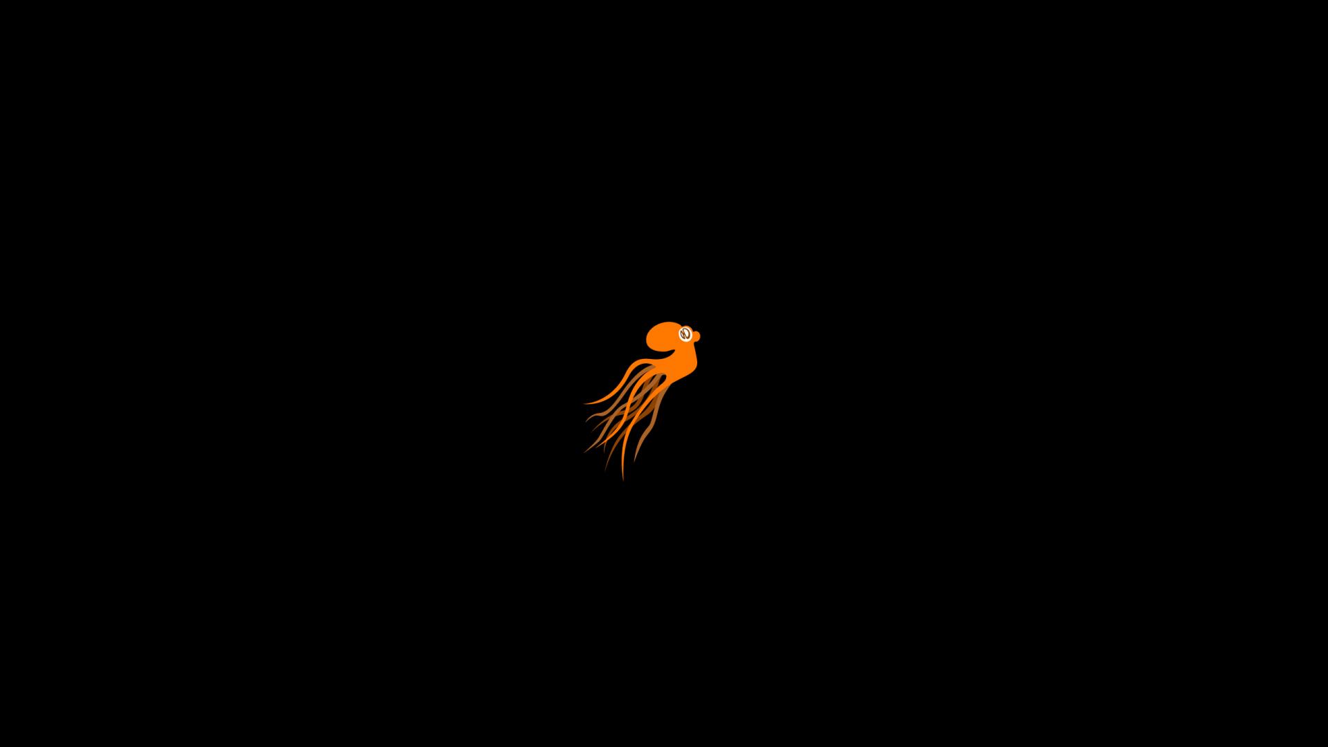 Обои Оранжевый кальмар, черный фон