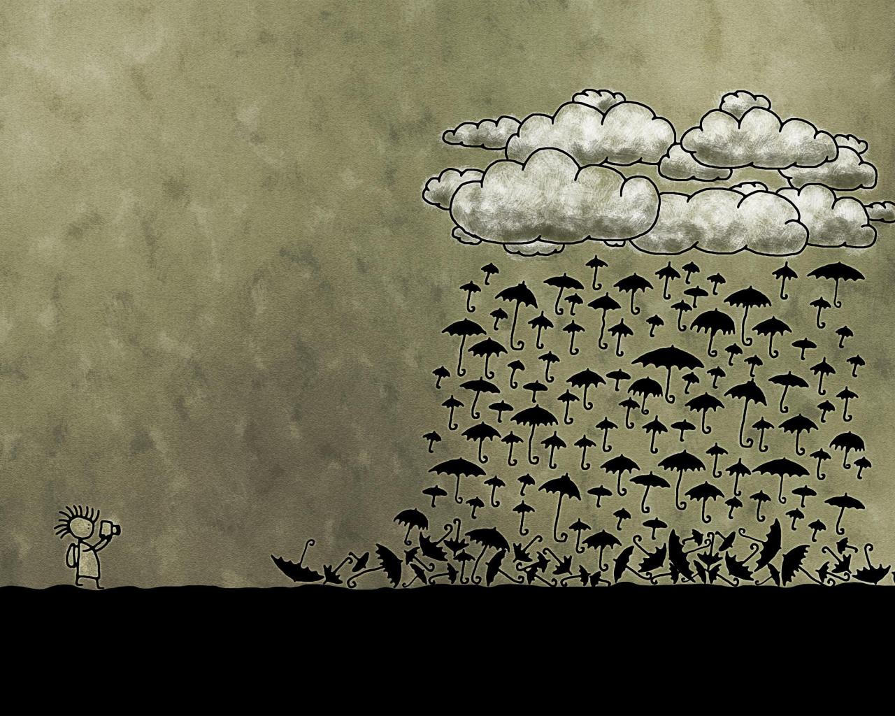Обои Дождь из черных зонтиков