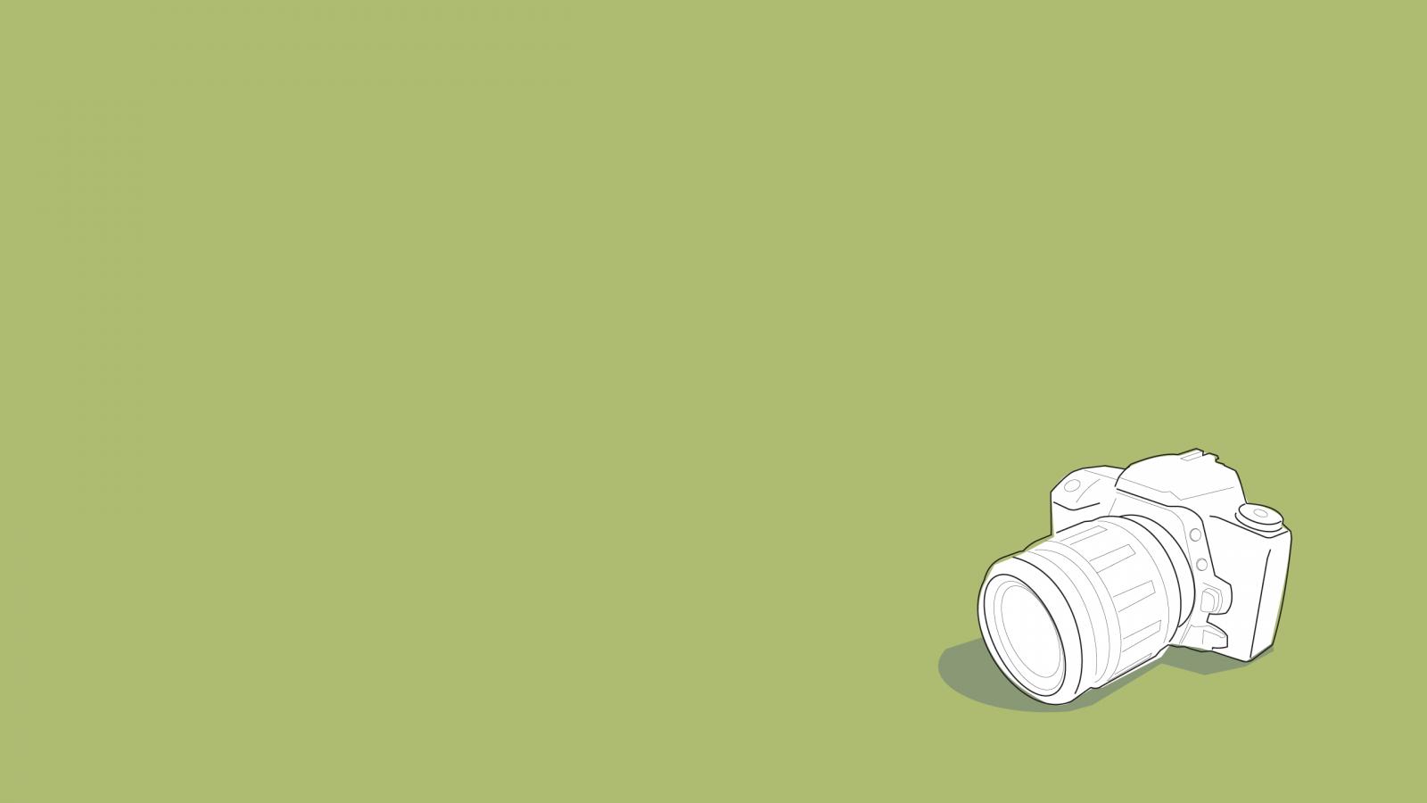 Обои Белый фотоаппарат, зеленый фон