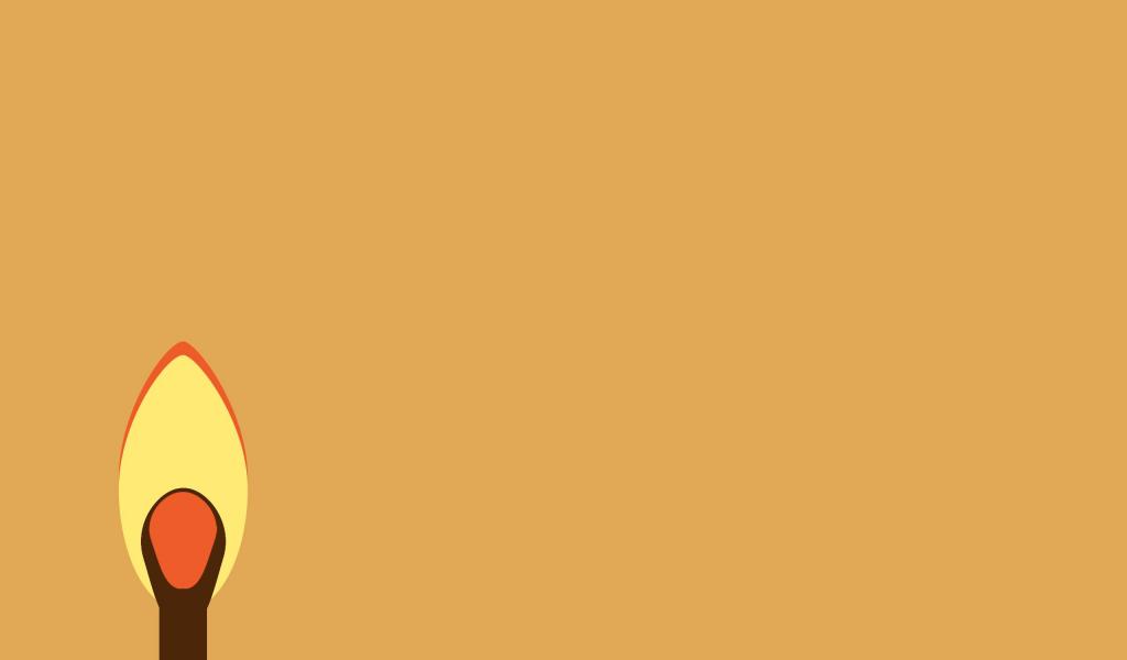 Обои Пламя спички, оранжевый фон