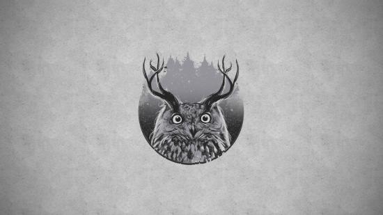 Обои Сова с рогами, серый фон