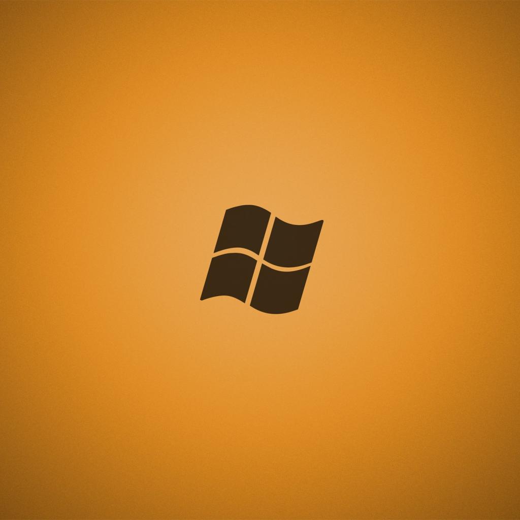 Обои Серый логотип Майкрософт, оранжевый фон