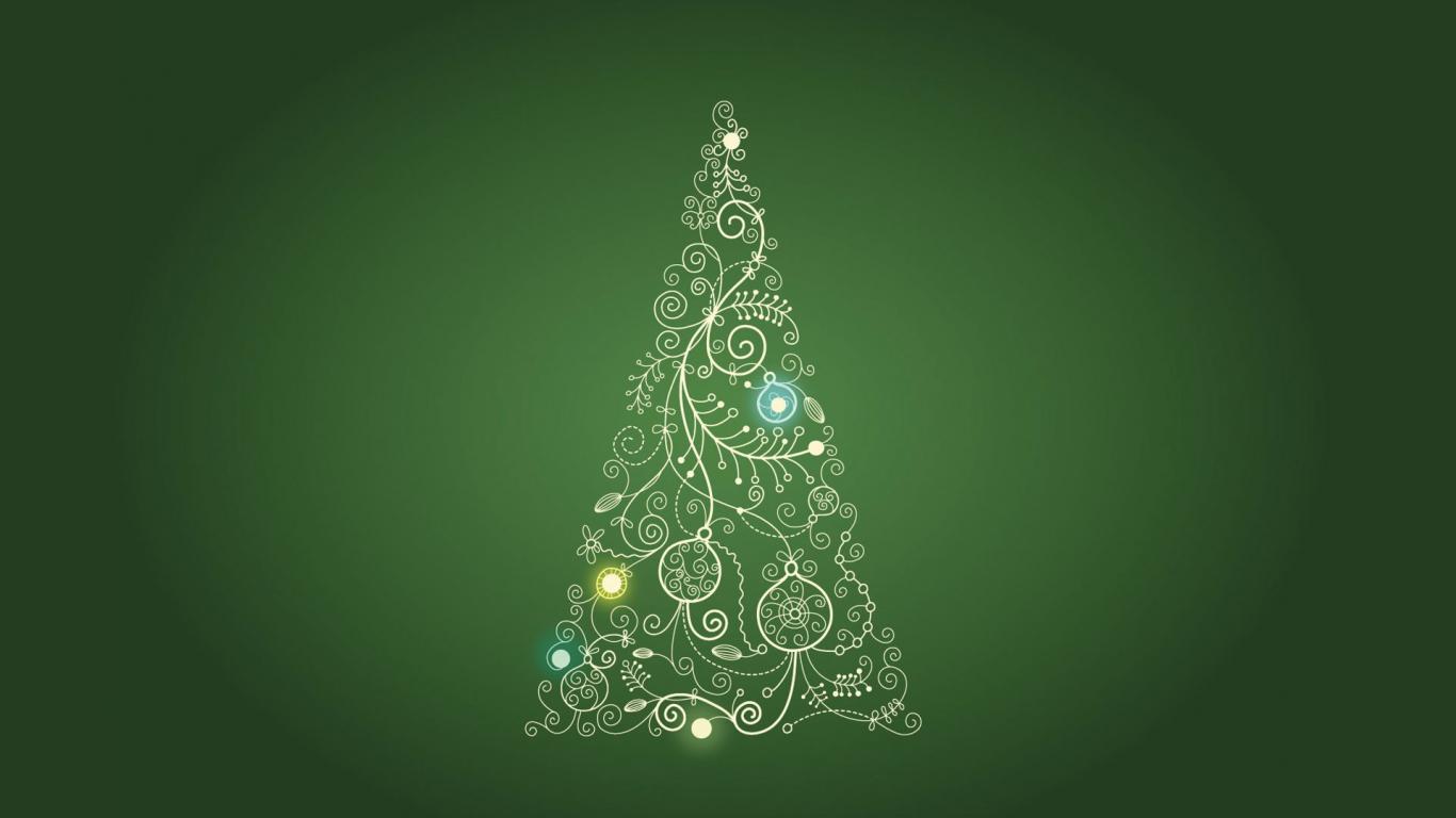Обои Орнамент елка, зеленый фон