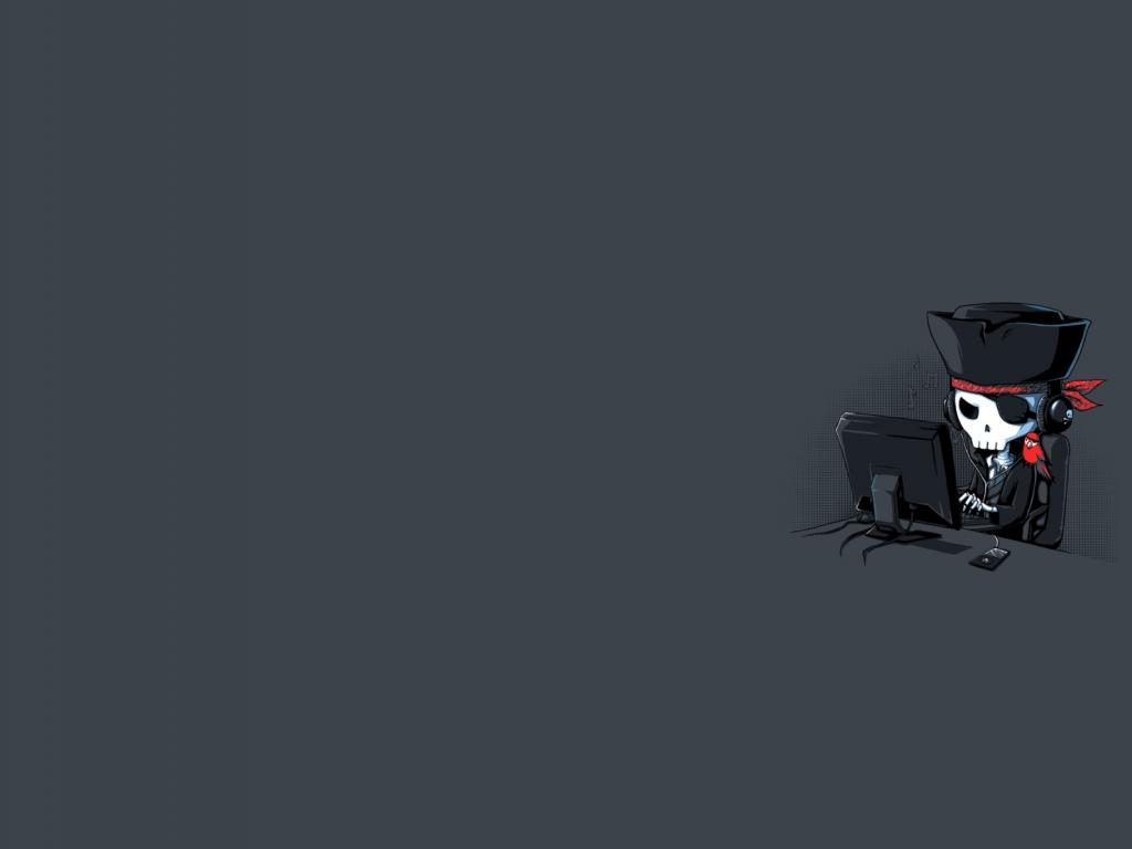 Обои Пират за компьютером, серый фон