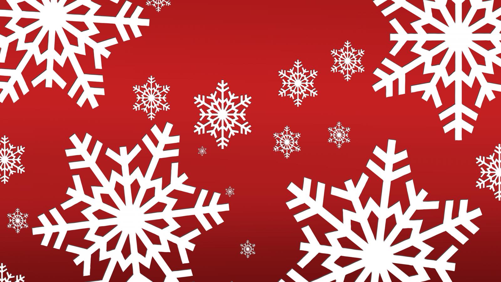 Обои Красный фон с белыми снежинками