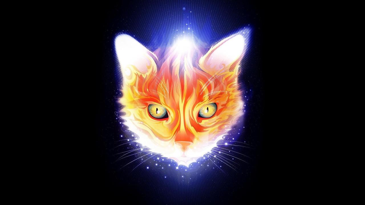 Обои Огненная мордочка кота, черный фон